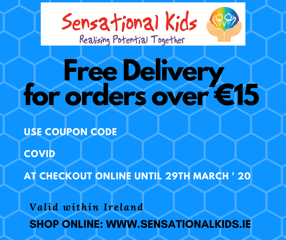 Sensational Kids online store is operating as normal. We have set up a free online delivery code for orders over €15 within Ireland, so that visitors to our child development stores can avail of free online delivery instead of shopping instore. Shop online at www.sensationalkids.ie