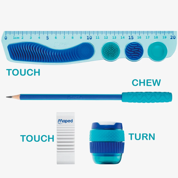 Textured Eraser – Provides sensory feedback while correcting mistakes, enhancing fine motor control.