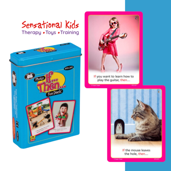 “If your hands have paint on them, then…” The Photo If… Then… Fun Deck allows students to practice logical thinking, cause and effect, and problem solving skills.