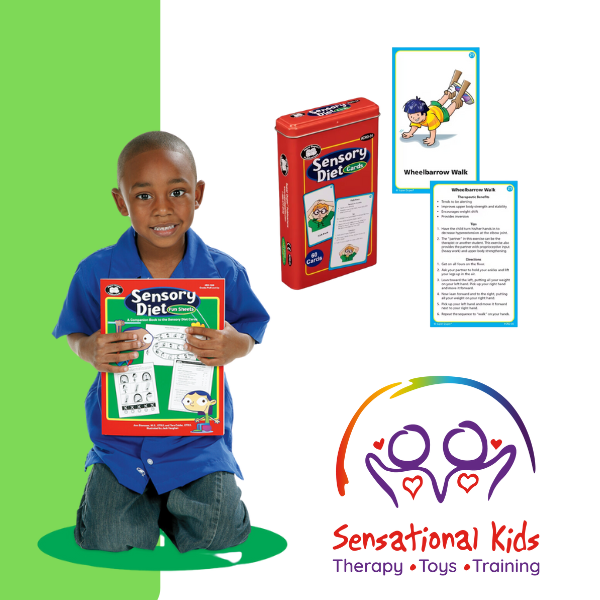 - Sensory Diet Cards: 60 full-colour cards (48 Exercise Cards and 12 Teaching Cards, 3″ x 5″) with instructions and game ideas.